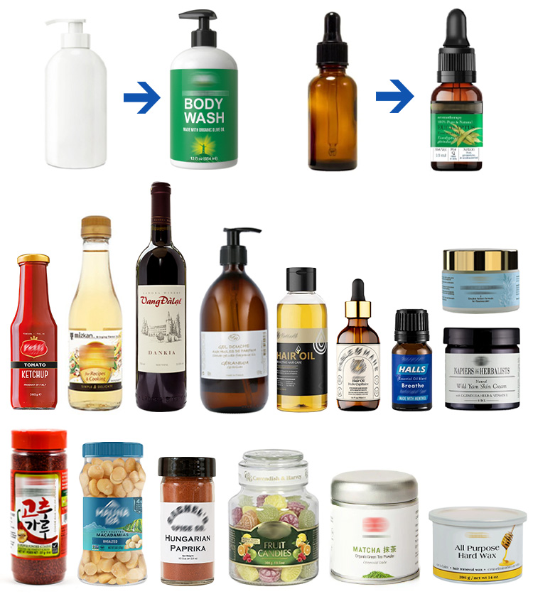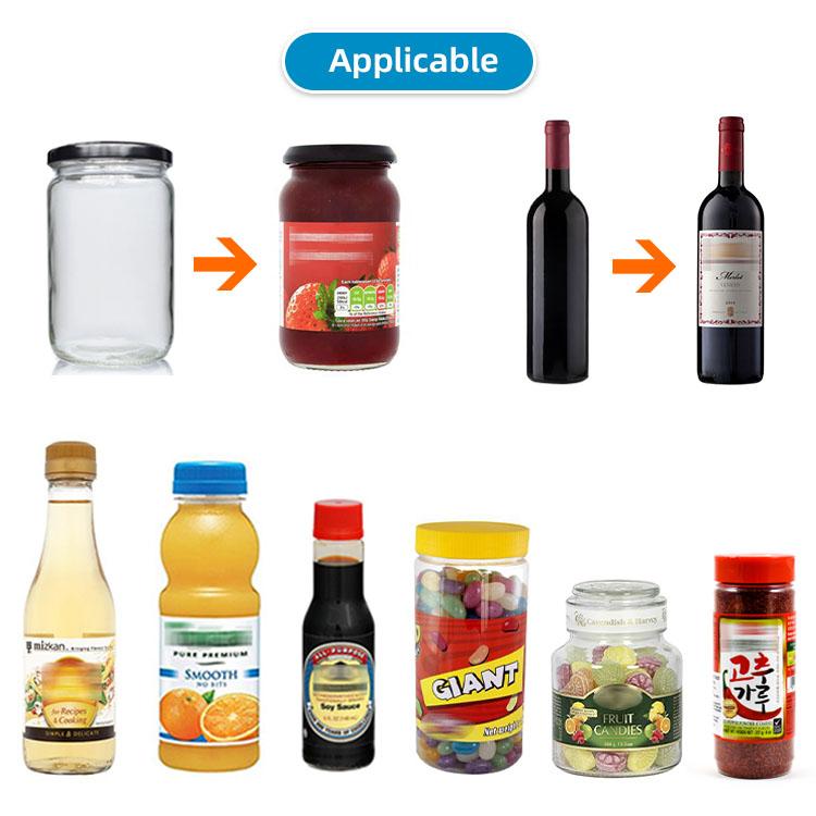 The automatic small round bottle labeling machine is suitable for labeling in food, daily necessities, chemical industry, agriculture and other industries. Such as juice, jam, coffee, milk tea, chili powder, milk powder, nuts, candy, dried fruit, etc.